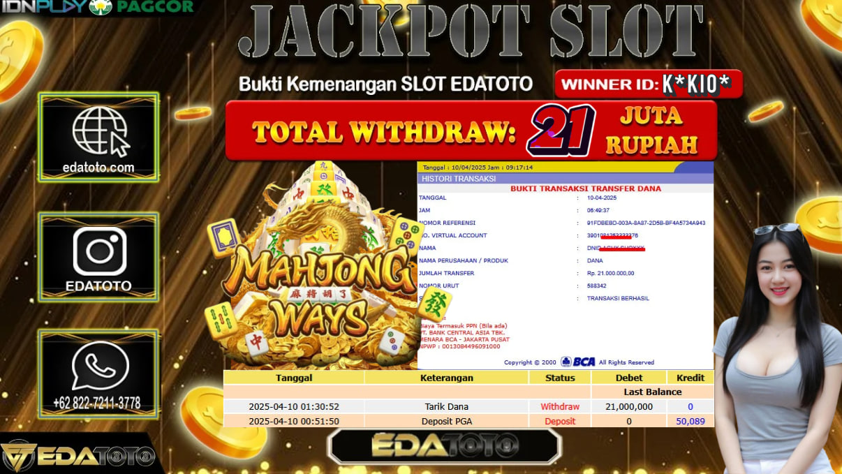 Selamat Kepada Pemilik user ID : k*ki0* Hari/Tanggal : Sabtu / 10 , April 2025 Jackpot : Rp. 21.000.000 JT . . .